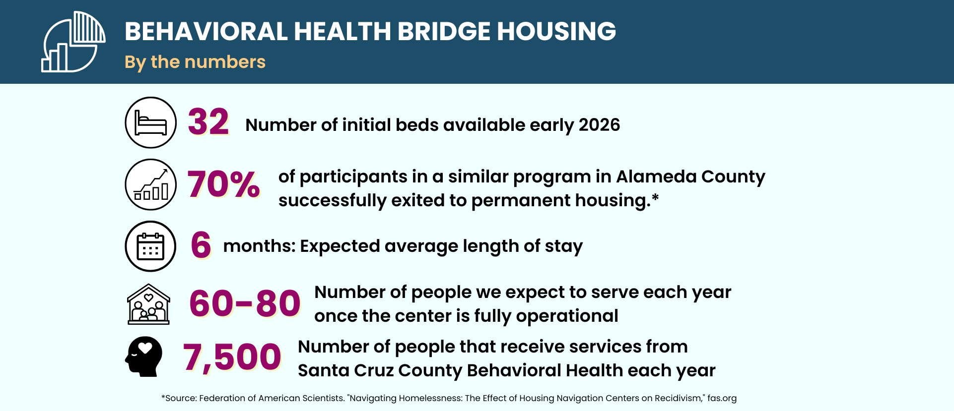 Input from various groups, including individuals with lived experience of mental illness, have emphasized the urgent need for housing solutions with integrated behavioral health services. The first of its kind in Santa Cruz County, this referral-based center is a step forward in addressing the intersection of homelessness and behavioral health challenges in our community.